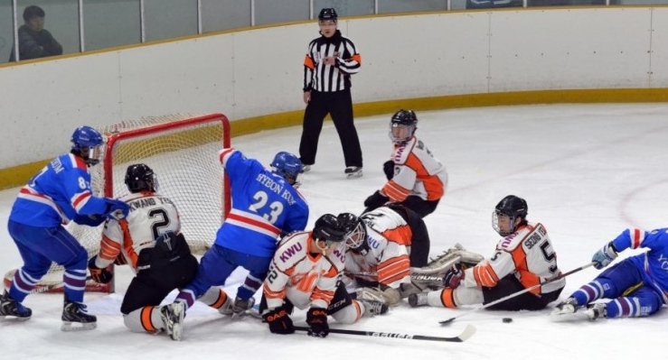 Kwangwoon, en orange et blanc, crée la surprise en menant deux fois au score contre Yonsei grâce à deux buts de Park Jong-Soo, un Américano-Coréen né et formé à Los Angeles qui a rejoint les rangs de l'université l'an passé au moment où elle a recréé une équipe de hockey sur glace. Les bleus s'en sortent sur un but gagnant de Yoon Sang-Won à cinq minutes de la fin. Yonsei ne part plus favori... et remporte pourtant le match-clé avec plus de détermination que l'université de Corée et quatre buts du même trio offensif inédit (composé du joueur de dernière année Kim Hee-Woong, du joueur de troisième année Kang Byung-Gal et du novice Kim Hyung-Kyum).