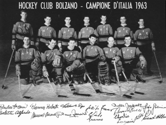 HC Bolzano : Giuliano Ferraris (Franco Viale) / Heini Bacher, Robert Psenner, Franco De Vito / Siegfried Schlemmer - Alfredo Coletti (CAN) - Giuliano Frigo ; Alberto De Grandi - Norbert Koler - Armando Mencarelli ; Romano Foltarel.