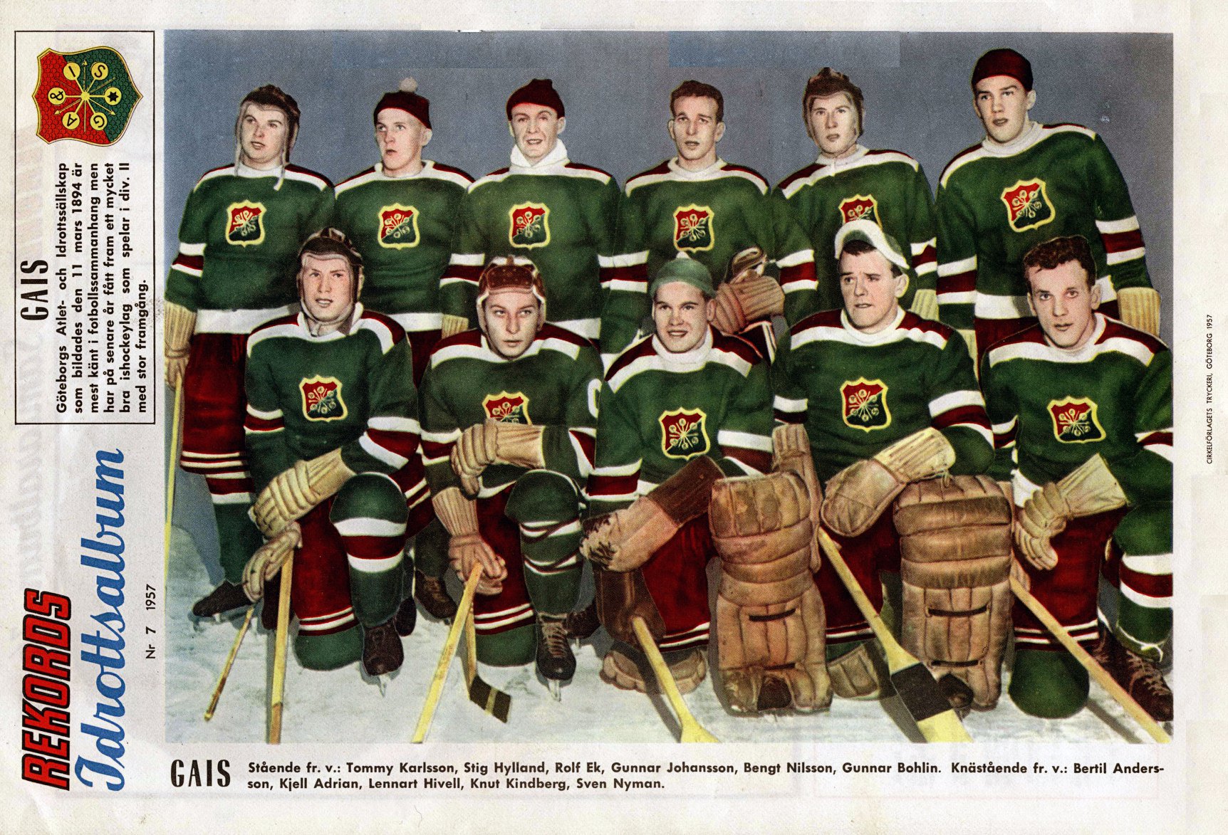 Le Gävle Godtemplares IK est champion de Suède en allant gagner 8-3 à Leksand par -16°C puis 3-2 à Stockholm devant 18 070 spectateurs. Le joueur-clé de Gävle est Hans "Stöveln" Öberg ("la botte"), intelligent et endurant, et il est maintenant rejoint par son frère Carl Göran alias "Lill-Stöveln" ("la bottine") qui est tout aussi doué techniquement, avec un fort caractère. Il n'a que 19 ans mais a déjà marqué 10 buts cette saison.