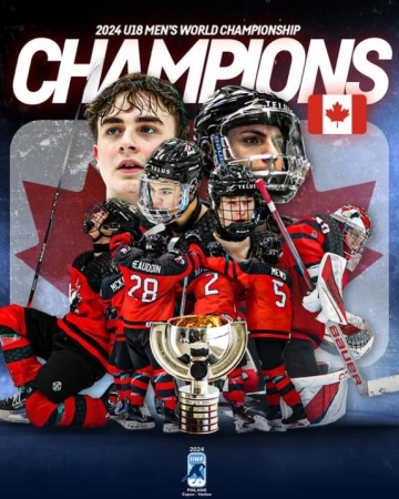 Les Canadiens n'avaient remporté qu'une médaille d'or au cours de la dernière décennie. En plus, ils jouaient sans leur talent majeur Macklin Celebrini, qui a renoncé à cette compétition pour rejoindre déjà l'équipe nationale senior... qui le retranchera juste avant le championnat du monde. Ils sont menés 3-1 mais le héros s'appelle Gavin McKenna. Il marque du revers sous la barre en fin de deuxième pérode, puis égalise au milieu du dernier tiers-temps (le premier de trois buts en powerplay inscrits pendant la pénalité fatale de 5 minutes de l'Américain Trevor Connelly). Le Canada est champion du monde des moins de dix-huit ans contre le cours du jeu.