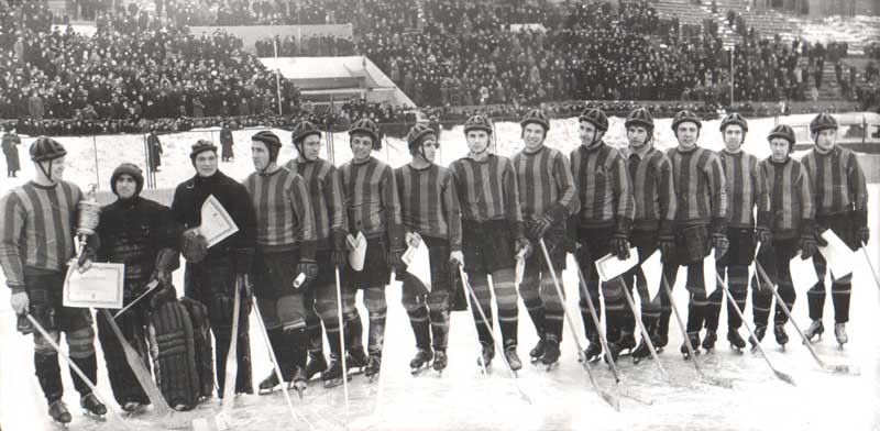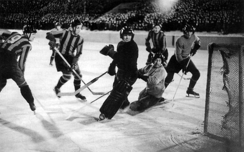 Le VVS MVO est champion d'URSS après un match d'appui face au club de l'armée - en photo avec l'entraîneur Anatoli Tarasov à genoux à côté de son gardien face à l'attaque menée par le numéro 9 et capitaine Bobrov. C'est d'ailleurs la vedette Vsevolod Bobrov qui inscrit les deux premiers buts de la partie