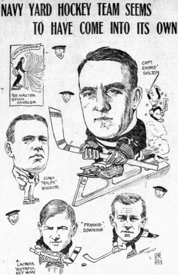 Boston Navy Yard : Alphonse LaCroix / Tom Howard jr (Tirrell) / Raymie Skilton (cap.) / Gerry Geran / Frank Downing (John Shea) - Jack Hutchinson - Joe Shaughnessy.