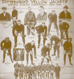 Pittsburgh : Roy Worters (CAN) / Lionel Conacher (CAN, 10+5) - Rodger Smith (CAN, 8+2) ; Charles "Terry" McGovern (CAN, 0+1) / Duncan "Duke" McCurry (CAN, 6+1) - James "Paddy" Sullivan (cap., CAN, 7+4) ou Harold "Baldy" Cotton (CAN, 7+2) - Alex McKinnon (CAN, 9+1) ou Wilfred "Texas" White (CAN, 11+2) ; Rennison "Dinny" Manners (CAN, 1+0). [Parti aux Jeux Olympiques : Herb Drury (2+0 en 2 MJ)]. Coach : Dick Carroll.
