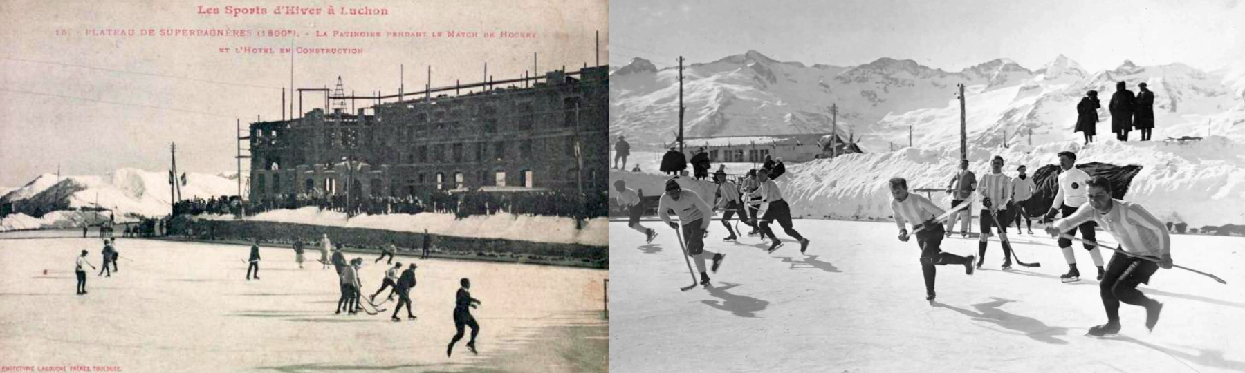 Les voyageurs sont transportés par traîneau à cheval depuis la gare de Luchon jusqu'au plateau de Superbagnères, où la construction du Grand Hôtel est encore en cours au niveau du troisième étage quand se déroule ce meeting.