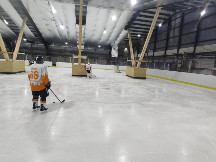 Fin 2021, une salle de tennis et de squash des années 1970, inutilisée depuis dix ans, a été rachetée et convertie en patinoire de 42 mètres sur 30 à Wabern par un responsable logistique (Vassiliy Abramov) et un chirurgien (Dimitri Döhl). Cette petite ville de Hesse est située sur la ligne de chemin de fer entre Francfort et Kassel et les équipes de jeunes de ces deux clubs rivaux sont donc venues s'y entraîner. Mais l'adhésif utilisé lors de la construction du toit, vieux d'un demi-siècle, s'est dissous avec les conditions climatiques. Pour ne pas fermer le bâtiment, des piliers de soutien ont été installés en plein milieu de la glace. Les hockeyeurs doivent donc les contourner ! Abramov, dont le fils de 14 ans Nikita joue au hockey, a lancé un crowdfunding de 30 000 euros pour rénover le toit, publié ces photos improbables et expliqué : "Oui, c'est inhabituel. Mais ma fille était patineuse artistique et elle s'est déjà entraînée dans des patinoires où il y avait des piliers de soutien."