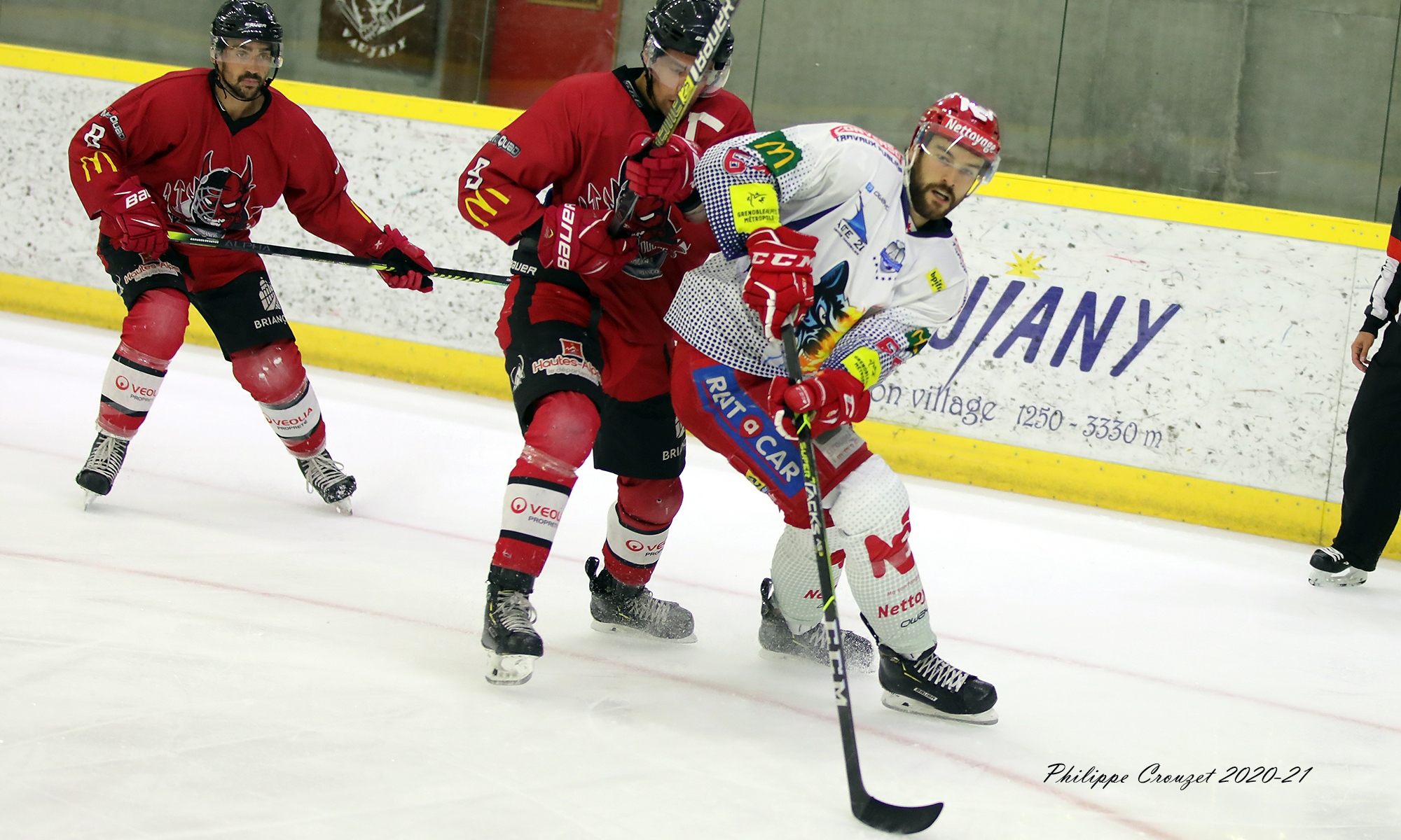 Dès lors il ne fallait pas s’attendre à beaucoup de mouvement dans l’effectif grenoblois. La plupart des joueurs ont donné satisfaction et souhaité continuer l’aventure. Ils ne sont que trois finalement à quitter Grenoble. Le défenseur Teddy Trabichet, formé à Grenoble et de retour en 2016, a connu deux saisons galères minées par les blessures. La saison 2019-20 était donc celle du renouveau pour lui car il a enfin connu une saison pleine. Mais à 33 ans, il a pris l’option de la reconversion professionnelle tout en continuant à jouer en D2 avec les Ours de Villard-de-Lans. L’attaquant Vincent Kara retrouvera son club formateur de Chamonix après trois saisons en Isère. Cet attaquant toujours combatif et collectif n’a pas réussi a confirmé les statistiques de sa première saison grenobloise avec deux années plus mitigées. Son rôle devrait être plus important du côté des Pionniers de Chamonix où il aura moins de concurrence à affronter pour se tailler une place sur les deux premiers blocs. Dernier départ, celui du défenseur international Antonin Manavian qui souhaitait retenter sa chance à l’étranger et dont l’indiscipline répétée commençait à le rendre de plus en plus discutable dans l’arrière-garde grenobloise. On rajoutera également le départ d’Aziz Baazzi, venu faire quelques matchs avec Grenoble en fin de saison après sa rééducation qui l’avait tenu éloigné des patinoires pendant de longs mois. Au départ simple joker, il avait finalement eu du temps de glace en play-offs en raison des absences de Bisaillon et de McEachen, tous deux blessés.