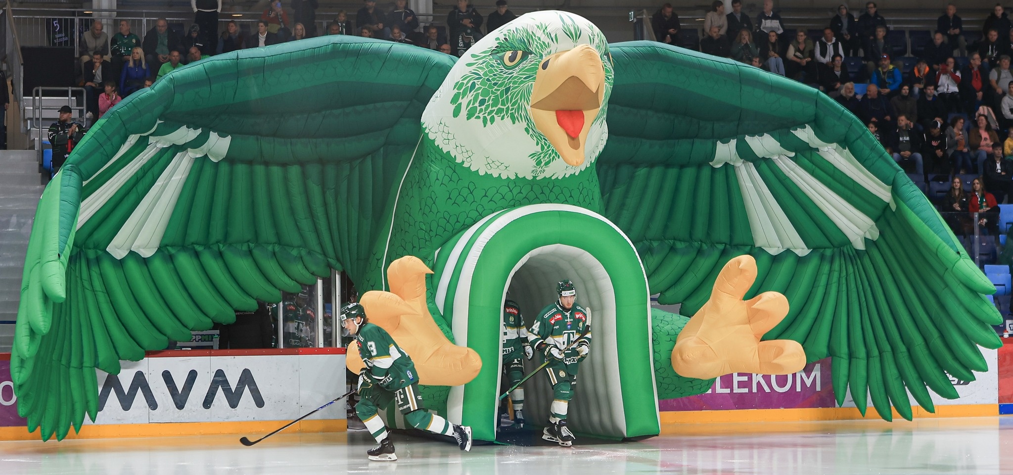 Les Autrichiens ont eu le sentiment de se faire mener par le bout du nez. Lors d'une assemblée générale extraordinaire en mars, les autres clubs ont voté aux deux tiers pour l'exclusion d'Asiago Hockey, financièrement exsangue. Deux candidatures étaient posées pour le remplacer : le "nouveau club" HC Asiago 1935, qui avait un public et une histoire mais une crédibilité entamée, ou le FTC, c'est-à-dire le plus grand club hongrois omnisports Ferencváros, qui joue devant des tribunes clairsemées mais permet à la ligue de mettre un pied dans la capitale hongroise Budapest. L'ICE HL a choisi la seconde option. Un autre club ayant l'aigle pour mascotte (photo ci-dessous) déferle donc sur la ligue. Un rééquilibrage a donc été opéré entre les nations : 8 clubs pour l'Autriche, 1 pour la Slovénie, désormais 2 pour l'Italie et 2 pour la Hongrie.