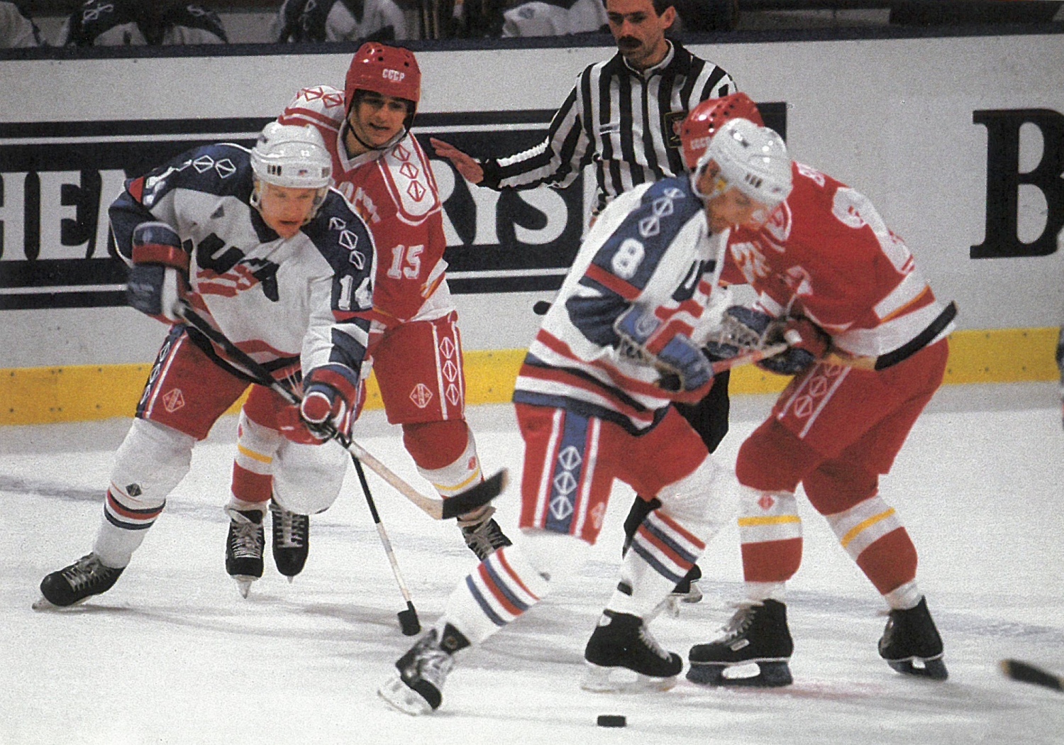 Ses soldats rouges doivent remplir leur contrat et sauver leur orgueil : cette Suède insolente, tenante du titre mondial, l'URSS veut l'humilier chez elle. Pour se faire les dents en ouverture de tournoi, rien de mieux que les États-Unis. Lors des trois dernières confrontations officielles, les Soviétiques les ont laminés. Même si ceux-ci incorporent de plus en plus de NHLers dans leur alignement (notamment une première ligne musclée Mullen-LaFontaine-Olczyk), ils n'arrivent jamais à rivaliser avec les automatismes de leurs ennemis favoris. Cela s'était vu lors des Mondiaux 1987 quand les Soviétiques en avaient inscrit onze.