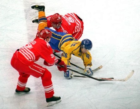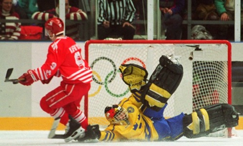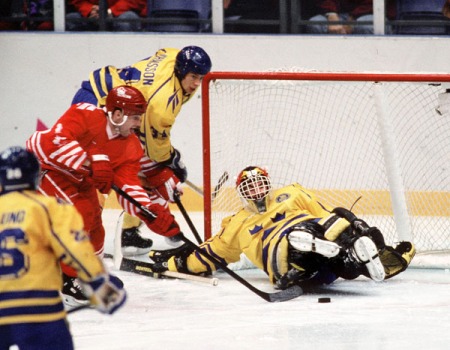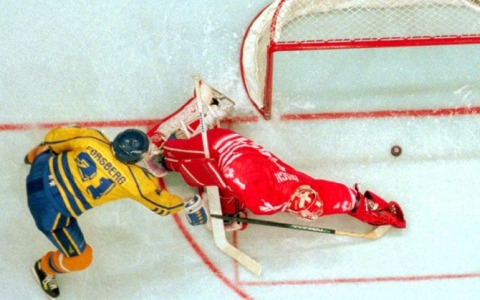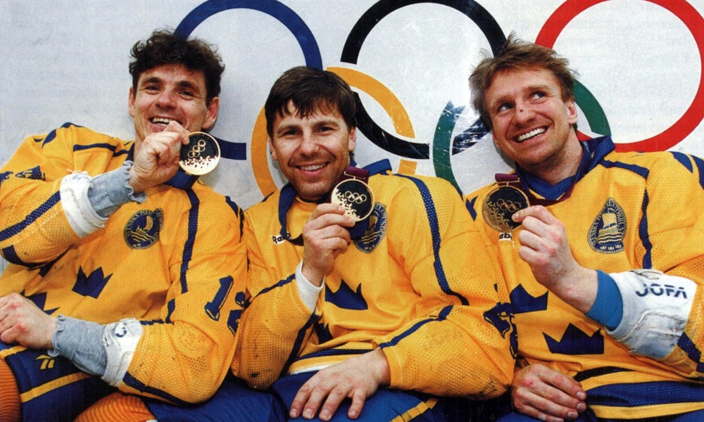 Le malheureux Corey Hirsch reste assis, prostré, sur le banc canadien, sans même avoir enlevé son masque, pendant que les Suédois sont au paroxysme de leurs émotions en fêtant leur première médaille d'or, couronnement du travail de cette équipe depuis des années pour se saisir de la place libre de nation dominante du hockey mondial. Le héros est un gamin de 21 ans nommé Peter Forsberg, alors que les vétérans Håkan Loob, Mats Näslund et Tomas Jonsson (de gauche à droite sur la photo ci-dessous) deviennent les premiers joueurs de l'histoire à avoir gagné les trois trophées majeurs : Jeux olympiques, Coupe Stanley et championnats du monde.