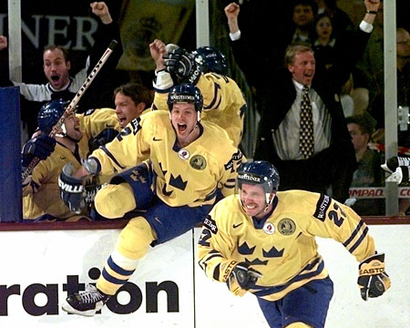 C'est bien un remake du Mondial 1992, oui, puisque le dernier 0-0 en championnat du monde remontait à un Suède-Italie à Prague il y a six ans ! L'évolution du hockey a de quoi inquiéter les dirigeants de l'IIHF, tout comme les scores des trois confrontations pendant le tournoi (1-0, 1-0 et 0-0 ) entre Suède et Finlande, deux adversaires qui se connaissent sans doute trop. Pas la peine d'avoir deux finales si c'est pour avoir aussi peu de buts car le public n'a pas eu deux fois plus de spectacle. Mais il ne fait aucun doue que les Suédois avaient la meilleure équipe, le dernier tiers-temps à sens unique a achevé de le démontrer. Peu importent les critiques sur son style de jeu ennuyeux, le sélectionneur Kent Forsberg part donc sur une nouvelle médaille d'or, un peu plus de quatre ans après celle des JO de Lillehammer.