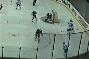 Cette préparation compliquée peut expliquer un début de match catastrophique. Jean-François Jodoin vient à peine poser le pied sur la glace qu'il part déjà en prison pour avoir accroché Aleksandr Kuvaldin - qui tombe facilement... - sur la première accélération russe. L'international biélorusse Aleksei Kalyuzhny remporte la mise au jeu qui suit. Le premier lancer du match, un slap axial d'Aleksei Troshchinsky (international du Kazakhstan pour sa part), est déjà au fond des filets (1-0). Le public russe salue la belle mise en échec d'Oleg Orekhovsky qui scotche Roger Dubé dans le plexi, et sur la contre-attaque, Antoine Mindjimba doit réaliser un double arrêt devant les lancers de Proshkin puis de Kuvaldin au rebond. Les timides attaques des Gothiques les exposent : après un tir à mi-distance de Jokiharju, Orekhovsky récupère le palet et lance Aleksandr Kharitonov qui fonce dans le dos de Dubois et Riihijärvi et bat Mindjimba à ras glace après une feinte de lancer initiale (2-0).