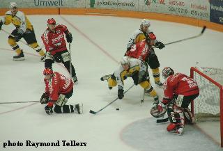 Le jeune Andreas Morczinietz est le premier à en bénéficier avec une splendide action individuelle. L'égalisation aurait déjà pu intervenir deux minutes plus tard par Shane Peacock, mais l'arbitre refuse le but. Krefeld ne parvient néanmoins à prendre l'avertissement au sérieux, ou tout du moins pas assez pour inverser la tendance et pour retrouver l'élan offensif du début de rencontre. L'égalisation n'est plus qu'une question de temps, et c'est Alex Hicks qui la signe à quatre minutes de la fin, plongeant la vieille Rheinlandhalle dans la désolation.