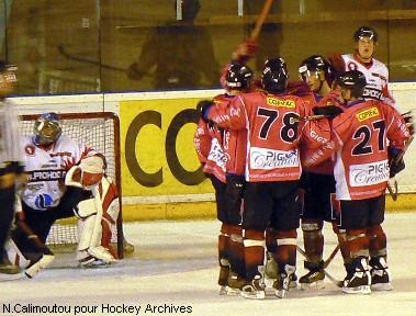5-0 à 35'26" : V.Cadren assisté de Majercak (inf. num.)6-0 à 38'44" : Grenier assisté de Mariage et Lassalle (sup. num.)