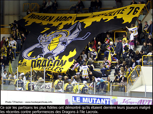 Malgré tout, les Nocéens, qui se présentent ce soir avec quatre titulaires en moins, restent un adversaire à la portée des Normands au complet. Après la défaite contre Épinal, le RHE 76 devait impérativement gagner avec la manière contre le HCNM 93. C'est chose faite pour les champions de France qui signent une très nette victoire 10-1 avec un triplé de Carl Mallette et deux doublés de Jérémie Romand et d'Éric Doucet. Après leurs deux dernières copieuses victoires (à Morzine et ce soir), les Dragons peuvent désormais se lancer dans une course poursuite derrière les trois cadors du championnat (Angers, Briançon et Grenoble)... Cela commence dans une semaine à Pôle Sud !