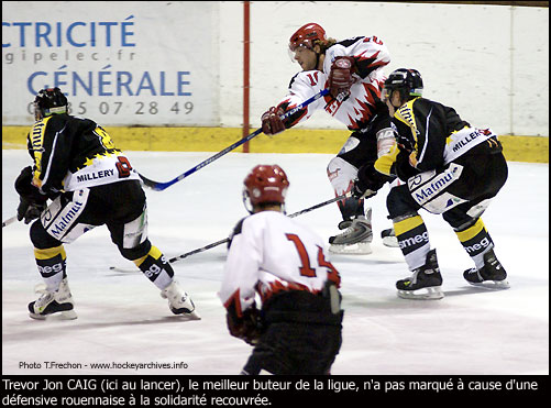 Mais les Nocéens, encore en apprentissage, ont manqué d'opportunisme pour espérer inquiéter les Rouennais. Jérôme Veret (18'58), Rane Carnegie (20'56, 36'17), Milan Vastusko (30'20), Pierre-Charles Hordelalay (36'02), Trevor Jon Caig (37'39), Joshua Boileau (52'08) et Ludovic Duranceau (54'55) ont manqué les plus belles opportunités des Bisons, souvent acquises alors que le match était joué. Dommage aussi que les banlieusards n'aient pas été aussi résistants et combatifs que pendant les 57 secondes où ils (Boileau - J.Veret - Wagner) ont joué en double infériorité numérique sans encaisser ! La rencontre auraient été moins à sens unique.