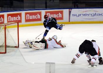 Lyon domine la fin de match, et contrôle le palet en zone offensive profitant de quelques pénalités. Mais les Lions manquent cruellement de finition, à vrai dire ils ne sont pas pour le moment aussi tranchants que la saison passée. Et après plusieurs nouvelles occasions, Aden clôt la marque (55'25") après avoir récupéré le palet derrière le but. Il contourne Kosa et envoie le palet dans le filet alors vide (3-0).