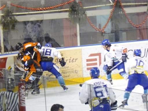 À la mi-match, un incident survient. Une charge spectaculaire sur Michael Clarke, qui le met sur le dos du Dijonnais avant de retomber lourdement, énerve le défenseur de Tours, qui vient asséner un coup de poing. Il sort, avec 5 minutes de pénalité majeure, 20 minutes pour piquage et 2 minutes pour dureté... Dijon va jouer en supériorité pendant 7 minutes ! Russo sort plusieurs arrêts et trois minutes sont tuées, avant de s'incliner sur un tir en lucarne de Kristin (4-2 à 32'46"). Et l'écart fond...