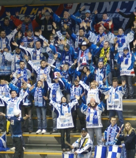 Ce match du vendredi après-midi se déroule plus tôt que les autres, à 14h, pour permettre l'invitation - grâce au partenariat entre le RHE et le Conseil Général de Seine-Maritime - de nombreux collégiens qui occupent une tribune entière et commencent à mettre l'ambiance. Il n'y a pas besoin d'eux, ceci dit, puisque les supporters de Martin, fidèles à leur réputation, sont venus avec leurs drapeaux bleus et blancs et leurs tambours. Ils servent d'imitation puisque les jeunes Normands, situés juste en face, sautent et "chantent" (dans leur meilleur slovaque...) au même rythme. La dizaine de supporters biélorusses n'a que la voix pour répondre, mais ils sont impliqués. Le public rouennais est aussi présent (les billets se vendaient à la journée et non au match) et le remplissage est très correct pour ce genre de tournoi à quatre.