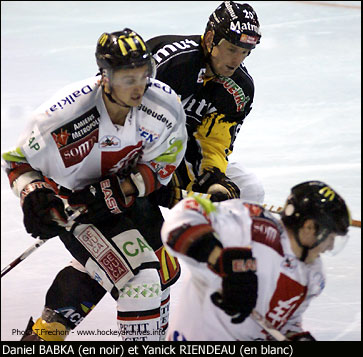 Attaquants : Loïc Sadoun - Anthony Mortas - Miroslav Pazak (C) ; Sylvain Rodier puis Grégory Béron - Yanick Riendeau - Brian Henderson ; Simon Petit - Kevin Hamon - Jonathan Boehrer ou Yannick Offret.