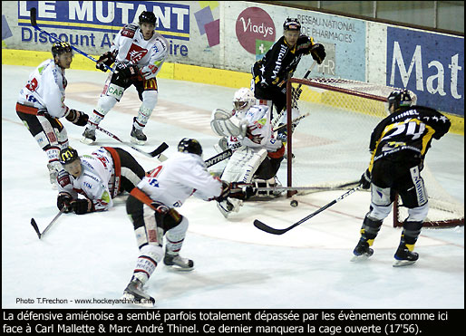 Sans un petit relâchement combiné à une grosse réorganisation des blocs noirs-et-jaunes – Cédric Custosse est rentré derrière pendant que Thinel et Doucet ont été dispensés des dernières vingt minutes – cette partie amicale aurait pu tourner à la correction. Pour revenir de 7-0 à 7-3 dans les dix dernières minutes, Amiens a moins profité d'une réaction collective que d'une défense locale moins rigoureuse. Brian Henderson a conclu de près dans le haut des filets (7-1 à 53'03), Simon Petit hors de tout marquage à mi-distance a envoyé entre les jambières (7-2 à 54'48) et Pazak a profité de la lenteur du gardien pour envoyer d'un tir à mi-hauteur dans une cage ouverte lors de l'avant-dernier jeu de puissance de ses coéquipiers (7-3 à 58'21).