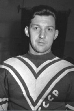 Often formed a line with Nikolay Khlystov and Mikhail Bychkov. Top league scorer in 1949, 1953, 1955, 1957 and 1958.