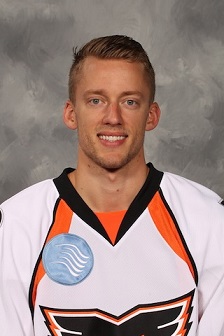 Il a débuté en NHL le 13 avril 2014, au dernier match de saison régulière des Flyers de Phyladelphie, face aux Carolina Hurricanes (5-6 aux tirs au but).