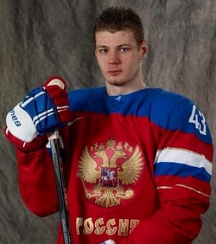 Meilleur espoir de KHL en 2013, il suscitait beaucoup d'espoir chez les recruteurs de NHL et fut choisi au premier tour, en 10e position, de la draft 2013.
